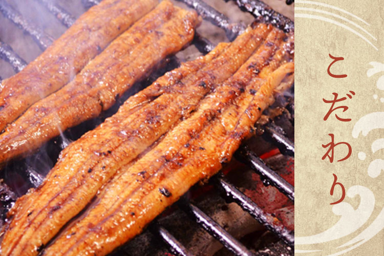 鰻を焼く済は「備長炭」を使用しております。強い火力は美味しい鰻を焼くためには必要不可欠。遠赤外線で脂が落ち美味しく仕上がります。また、脂が落ちる際に炎が上がらない事も備長炭ならでは。鰻の水分が抜けないうちにしっかりと焼き上げます。